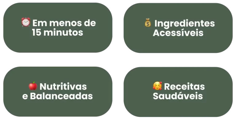 Entre escola, trabalho e atividades, sabemos que o tempo é precioso! Por isso, todas as receitas são práticas, podem ser preparadas com antecedência e muitas levam menos de 30 minutos para ficarem prontas, sem abrir mão da qualidade nutricional.